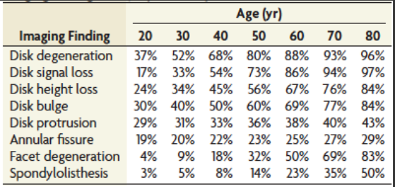 • Brinjikji, W., Luetmer, P. H., Comstock, B., Bresnahan, B. W., Chen, L. E., Deyo, R. A., ... & Wald, J. T. (2015). Systematic literature review of imaging features of spinal degeneration in asymptomatic populations. American Journal of Neuroradiology, 36(4), 811-816.