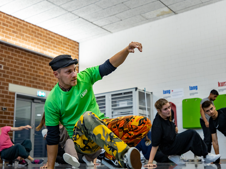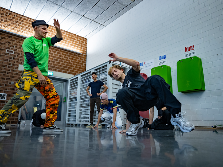 Im Breakdance gibt es keine Niveau-Unterteilung. Alle sind willkommen und der Einstieg ist jederzeit möglich.