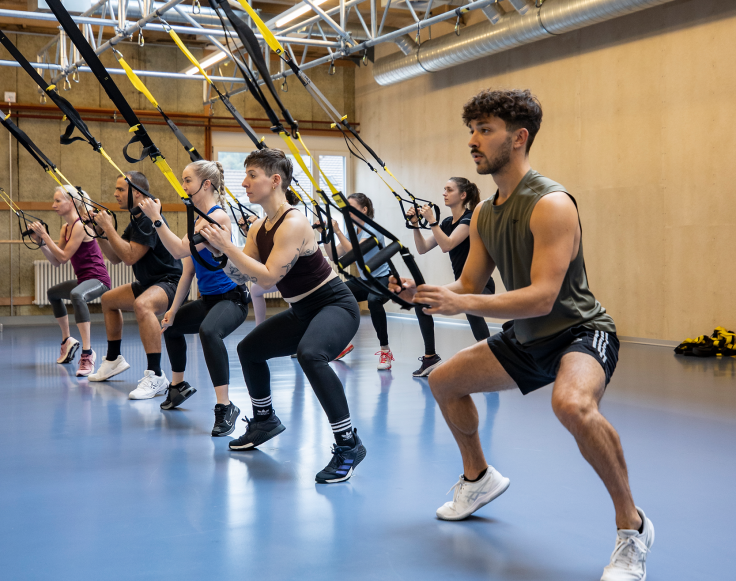 TRX ist ein intensives Ganzkörpertraining mit Variationen in allen Bewegungsebenen. Bei diesem Gruppentraining arbeitest du im Rhythmus zur Musik und nutzt das eigene Körpergewicht. Mit jeder Übung, die in der Schwierigkeit variiert werden kann, wird die Rumpfstabilität, das Gleichgewicht, die Ausdauer und Kraft verbessert.