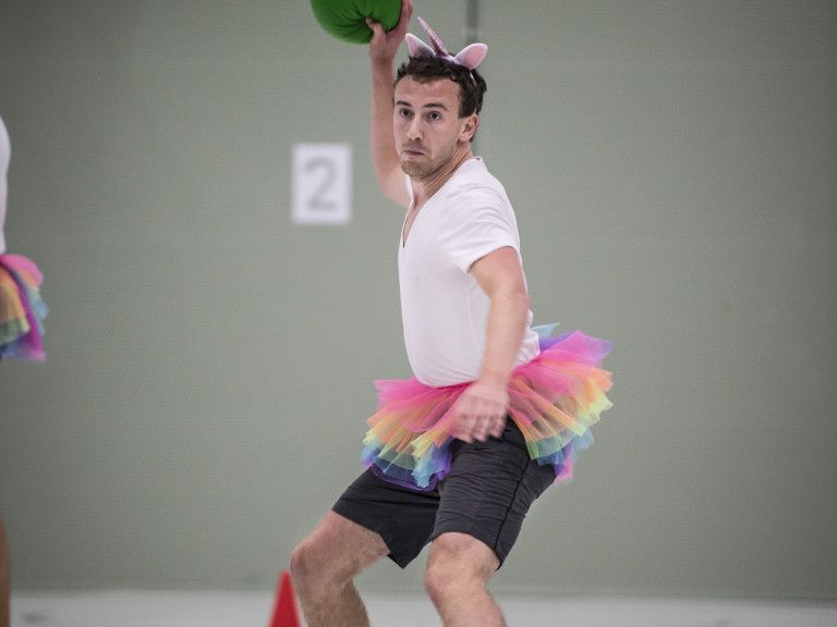 Lasse dich wieder einmal in den Schulunterricht in der Turnhalle versetzen. Wir spielen einen Abend lang Völkerball, das beliebteste Spiel aus der Schule. In Mixed-Teams wird in Verkleidung abgeworfen, gefangen und sich spektakuläre aus der Schusslinie gerollt.
