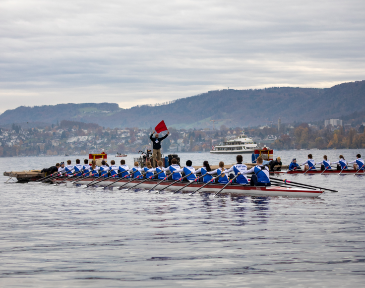 Ein besonderes Kapitel wurde 2017 aufgeschlagen, als erstmals weltweit zwei 16er-Ruderboote gegeneinander antraten – selbstverständlich ganz im Geiste des Events besetzt mit UNI- und POLY-Ruder:innen. 2025 erfuhr die Zusammensetzung der Grossboote eine Neuausrichtung und die «16er-Future» feierten ihre Premiere auf der Limmat. Die beiden Boote «Seebecki» und «Ruderverband Oberer Zürichsee» werden von Nachwuchsathlet:innen aus den Zürcher Ruderclubs besetzt, die vielleicht schon bald in einer der klassischen Achter-Kategorien an den Start gehen werden. So können sie bereits früh UNI-POLY-Luft schnuppern. Sowohl für die Teilnehmenden wie auch das Publikum wurde damit ein neues Highlight geschaffen.