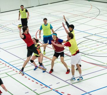 Kräftig zupacken in der Abwehr oder dynamisch durch die gegnerische Verteidigungsreihe springen; aus dem Sprung über den Block werfen oder den Torwart mittels Trickwurf vom Flügel bezwingen: Handball ist eine äusserst spektakuläre und vielseitige Sportart. Im ASVZ bieten wir diverse Trainings, Kurse und Events an.